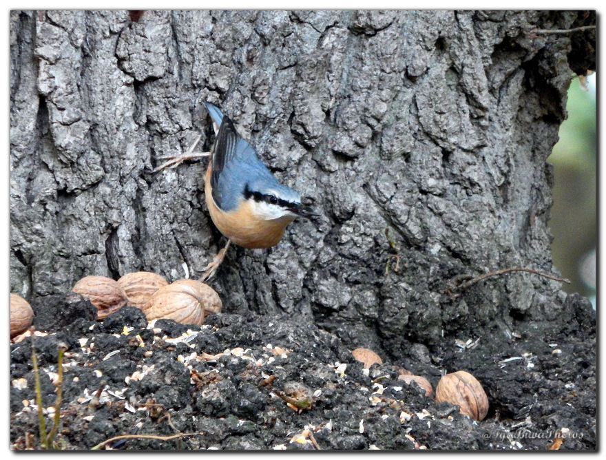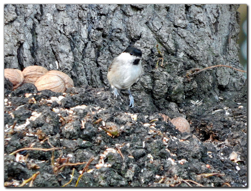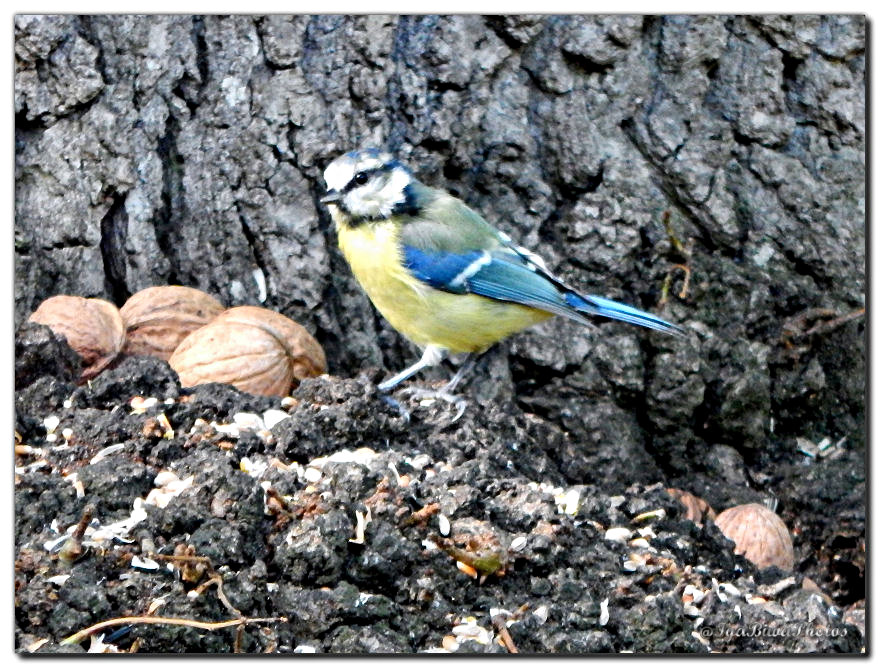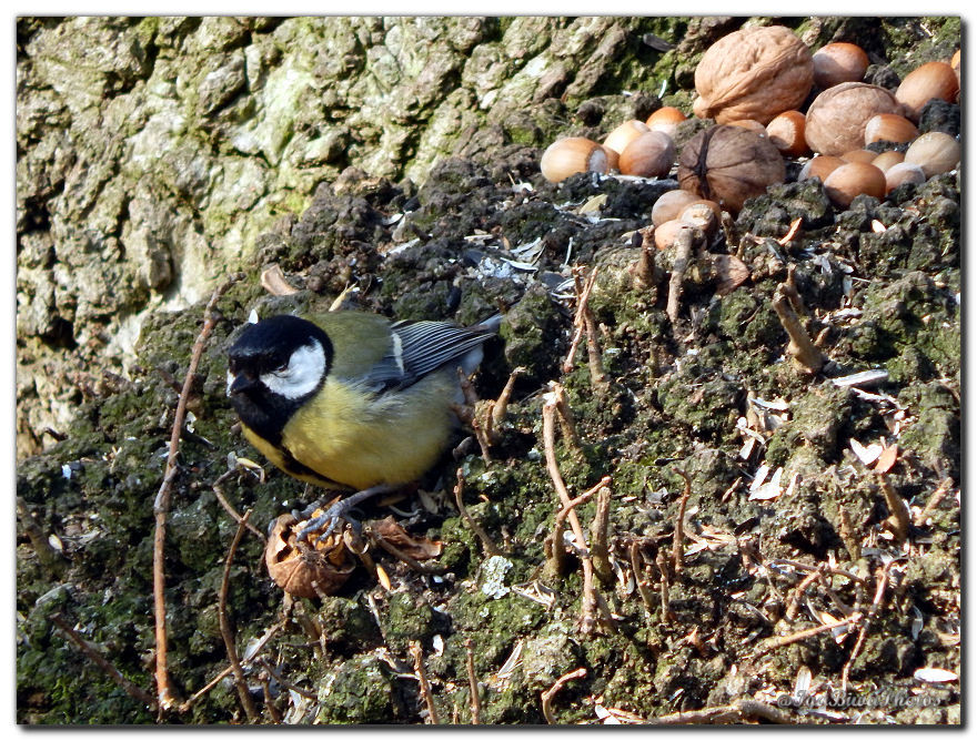 Facile d'attirer les petits oiseaux avec quelques grains de blé sur la boule du chêne des écureuils, très difficile pour les photographier par contre ! Au moindre bruit ou mouvement ils s'envolent ! Aussi je dois rester assez loin pour pouvoir les capturer dans l'objectif !